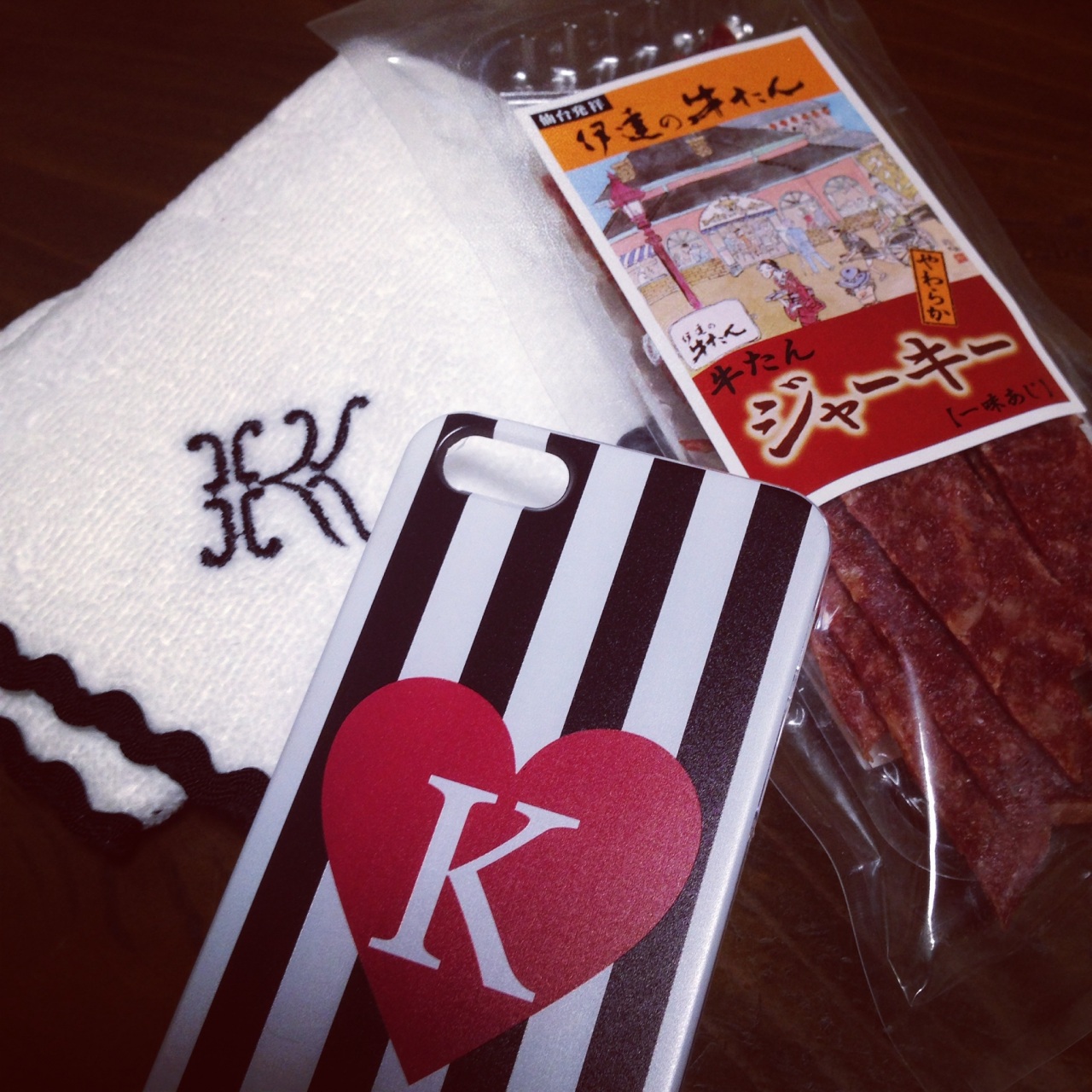 えむし仙台土産とあいぽんケースありがとうー!!タオルハンカチは、横アリと広島のチケ交換していただいた上にこんなプレゼントまでもらってしまって(;∇;)*:.。. 写ってないけどひときむ横浜の鳩サブレありがとーう!!